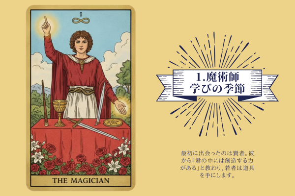 正位置の意味 魔術師の正位置は、強い意志力と創造性を活用して目標を現実化する力を表しています。あなたが持つスキルや才能を最大限に活用し、思考を具体的な成... -